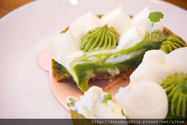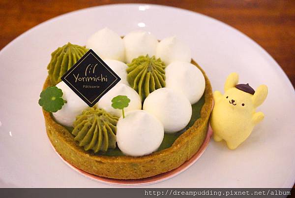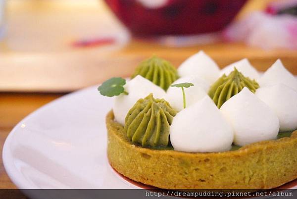 好可愛的甜點;為抹茶口味的塔,小小迷你金線蓮很像龍貓撐的傘吧!