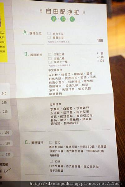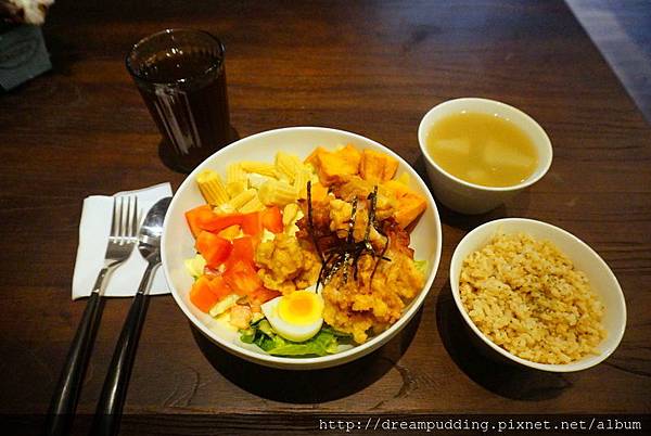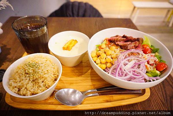 有原本配好的沙拉菜色,可以加價升等套餐,會再多了主食跟飲品。