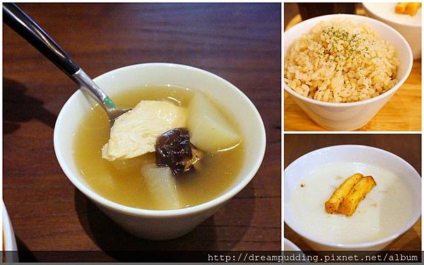 來兩次喝的湯品都不同,一次是雞湯,料多實在,新鮮清甜;另一次是濃湯,也是料多味美;而五穀飯也是份量給很多的一碗,乾爽中帶點微微的濕潤,是好吃的五穀飯。