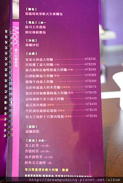這兩張是商業午餐,有排餐跟義大利麵可以選擇,附餐選項就比較沒那麼多,但價格上會更優惠一些。