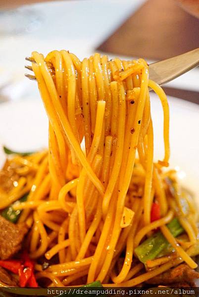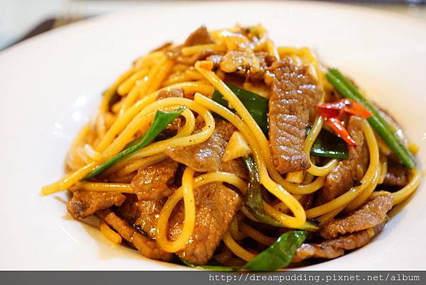 真的就是很蔥爆牛肉!牛肉給的很多,口感鮮嫩,義大麵十分入味,一入口就能嚐到那鍋氣鑊鑊的蔥爆感,口感Q彈帶點嚼勁,份量也多,我們都挺喜歡。