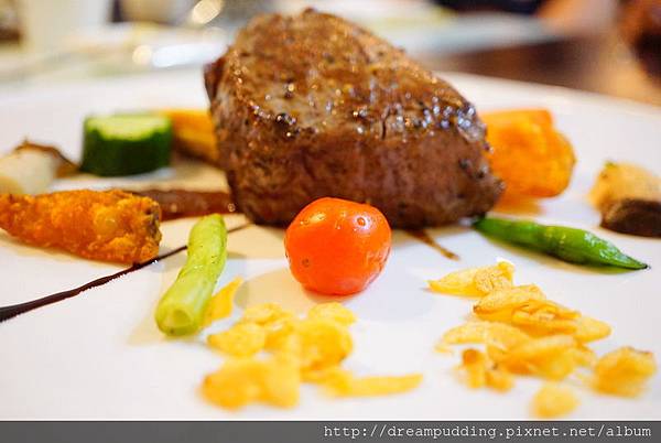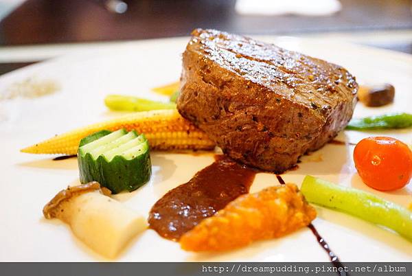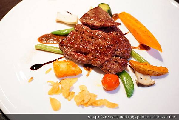 美國特選嫩煎里肌牛排。口感上嚼勁比菲力明顯,也是很不錯且耐吃的一道餐點。