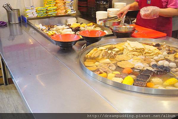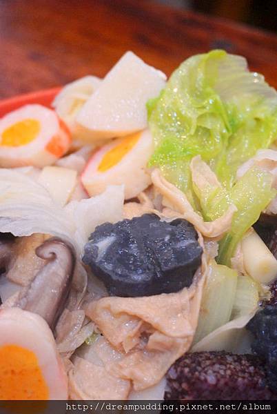 大鍋裡有著許多食材,每個看起來都好可口,我跟誠懇先生一不小心就夾了一堆@@