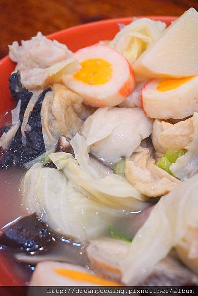 關東煮全部都用成一大碗,是很大的碗公喔,裡面的料有香菇、高麗菜捲、麻糬燒、米血、筍子、豆皮、墨魚丸...等還有好多好多,這餐跟誠懇先生兩個人總共吃了300多元。