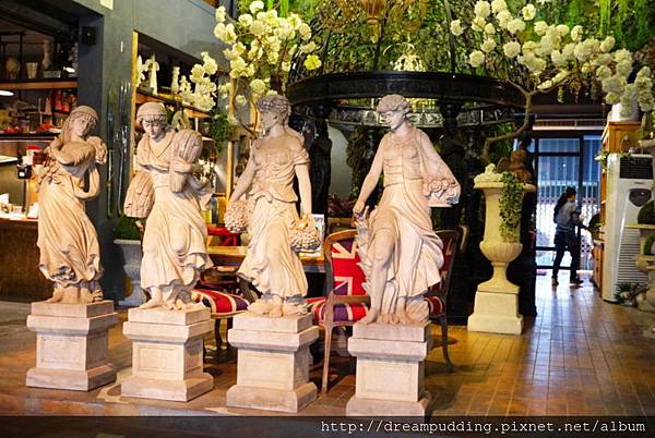 一走進室內就會看到雕像跟噴水池,明明在室內,卻很有身在歐洲庭園戶外的感覺啊。