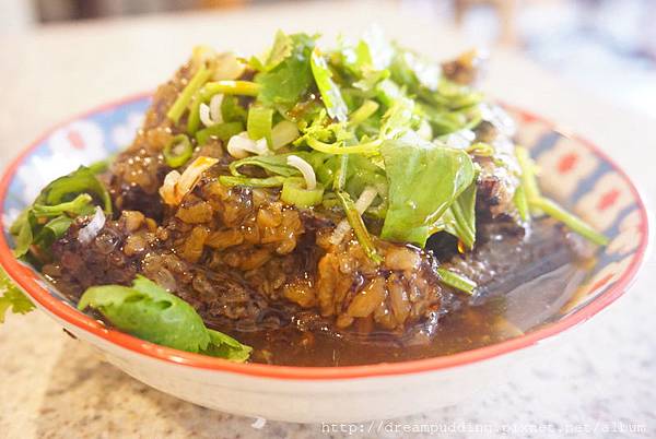 這好好吃!米血軟Q香黏,搭配濃郁微稠的醬汁,甜鹹帶點細細微微的潤澤香辛,我跟誠懇先生都超愛。