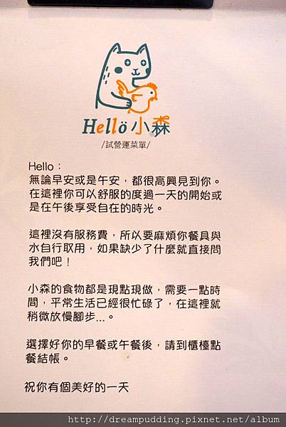 Hello小森是小森空間的另一個型態,從無菜單預約制晚餐變身成早午餐系列,地點位於我之前好喜歡的HELLO CAFE舊址,HELLO CAFE歇業之後,換Hello小森接力上場;之前吃過他們的晚餐,口味挺喜歡的,所以現在轉變成早午餐之後,當然要找時間奔來的啊(跑