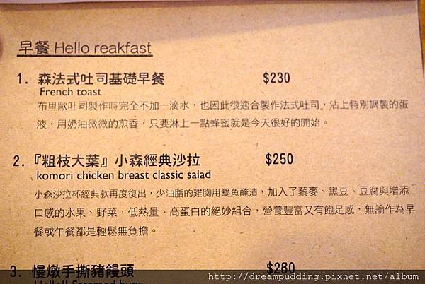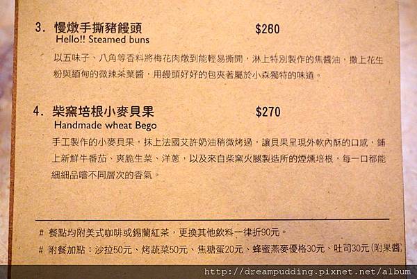 目前只有提供4種餐點,以早午餐為主,不收服務費。