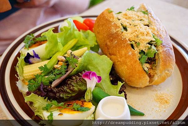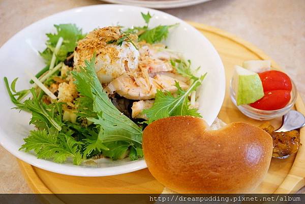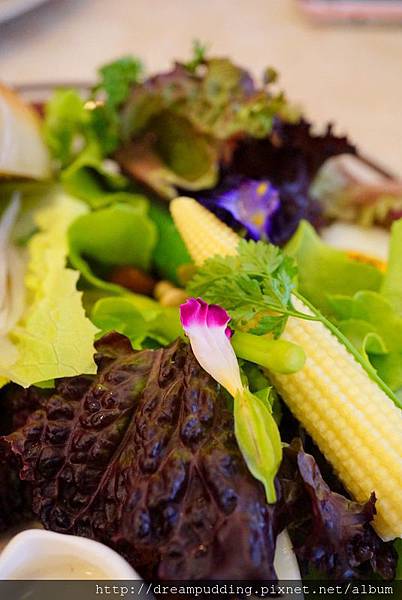 這天的生菜種類很多,還有玉米筍跟秋葵及美麗的食用花,更令人興奮的是有我最愛的焦糖蛋(我怎麼沒拍到>////<),搭配的是濃稠的優格醬汁,讓整體清爽。