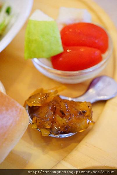 水果有甜,抹貝果的果醬有果肉,酸甘微甜的很有口感。