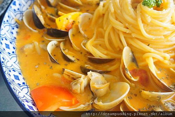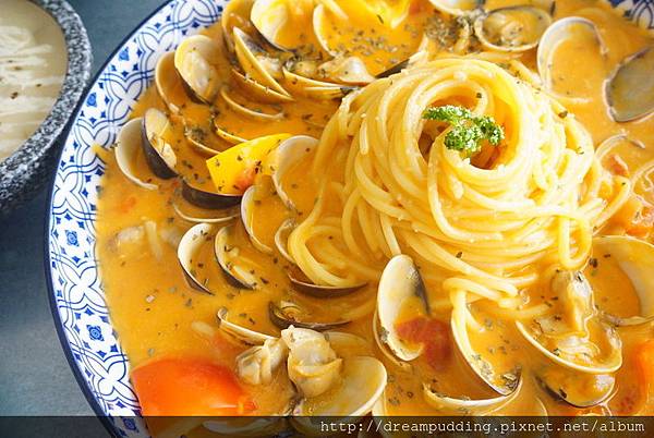 橘醬爆炸蛤蠣宅宅麵,NT 258元。