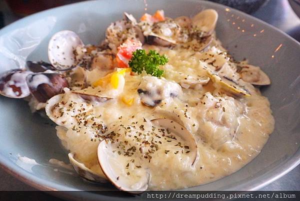 白醬爆炸蛤蠣飯,NT 250元,這是沒加飯的份量,但是飯量就很驚人了。