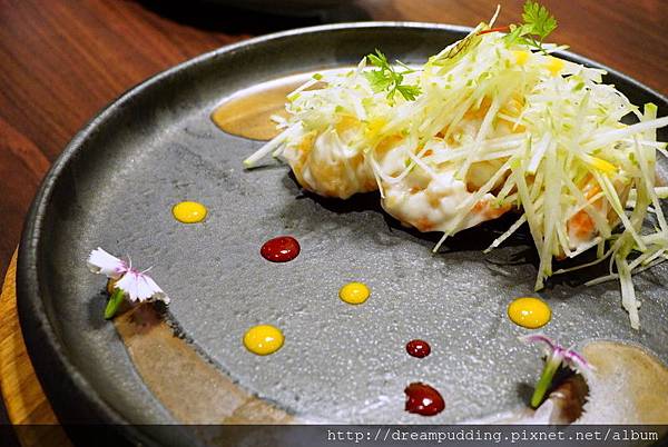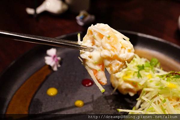 炸的外酥內彈脆的新鮮蝦球,搭配甜潤的美乃滋跟清脆的青蘋果絲,口感甜美新鮮,很有夏日小清新感。