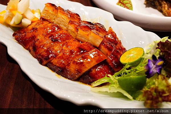 肉跟骨頭可輕易的分離,所以不用擔心啃咬沒有形象的問題;口感軟嫩且醬香十足,煙燻得很入味,誠懇先生極喜歡。
