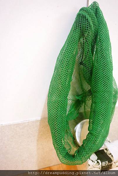 沾醬用的小碟子放在掛在牆邊的漁網裡。
