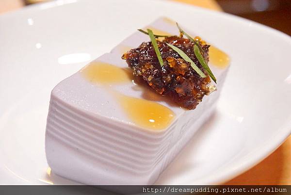 手工豆腐要比一般豆腐來的緊密也比較硬一些,口感上很細緻濃郁,搭配自家熬煮的梅果膠,增加些許酸甘甜,口感很不錯。