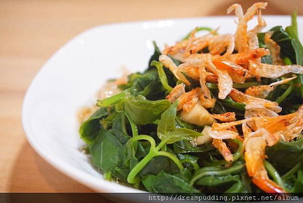 手摘的赤道櫻草口感十分細嫩且脆甜,搭配新鮮蝦米,好吃