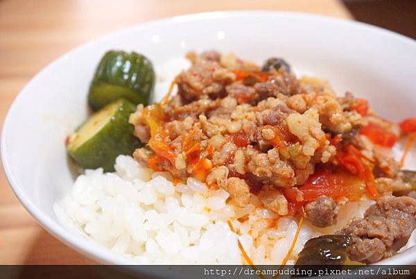 白飯煮的軟硬適中,肉燥加了瓜仔跟番茄,解膩且清爽,還有清脆的醃漬黃瓜,是碗濃郁中帶有清爽且不膩口的肉燥飯阿。