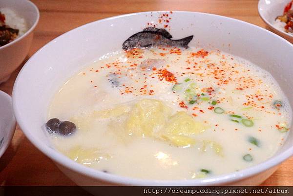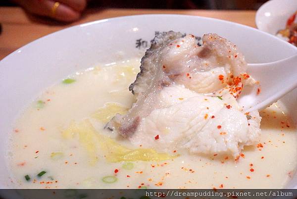 加了豆乳的魚湯喝起來濃郁且滑順,口感上不會太過濃膩,順順滑滑的,有點像很清爽的牛奶;裏頭還加了高麗菜增加清甜度,魚肉都很大塊且新鮮,口感上緊緻帶點Q彈。