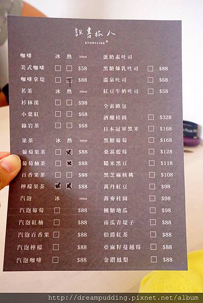 內用販售部分咖啡及茶類還有麵包,飲品都很平價,拿鐵只要88元。