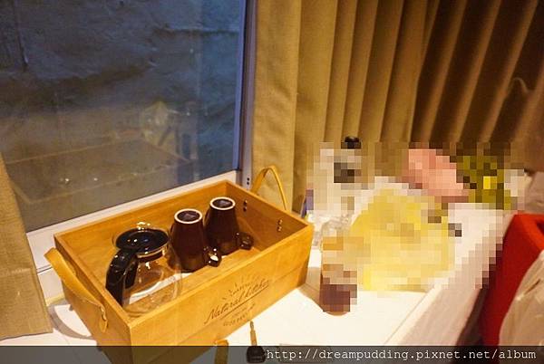 還有個窗台區,雖然窗戶沒有打開(因為沒風景),但我跟姊妹還是站在這裡看著自己幻想的風景一邊吃排骨酥喝飲料一邊聊天