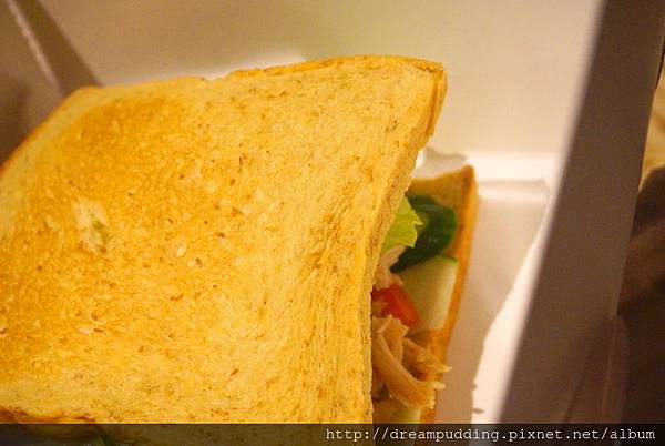 住宿有附早餐,這天是熱紅茶跟手作燻雞生菜三明治,料蠻多的,也很新鮮,有飽^^