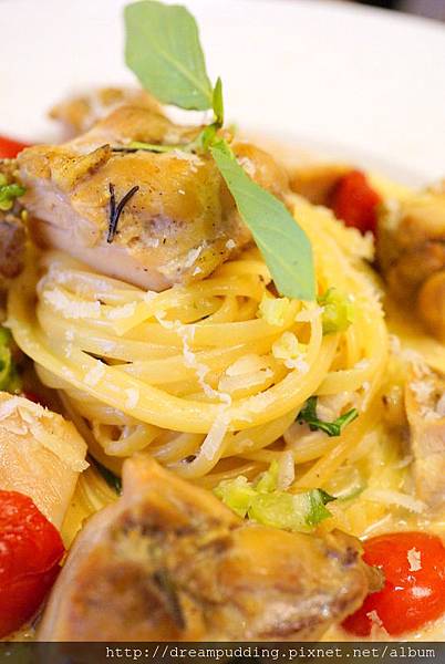 麵體軟Q,醬汁跟麵一樣緊密的結合很好;奶油醬汁加了紹興酒,有著迷人的芳香酒氣,迷人卻不醉人。