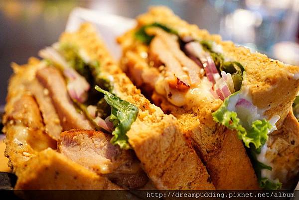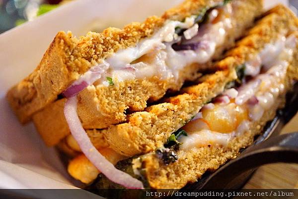 裏頭塗了濃厚的美乃滋塗醬,搭配生菜還有微辛的紫洋蔥以及6隻Q彈的鮮蝦,口感也是濃郁豐富;我覺得微甜潤澤的感覺很完美,比較不愛甜的友人則覺得美乃滋太多;果然吃東西真的是見仁見智阿。