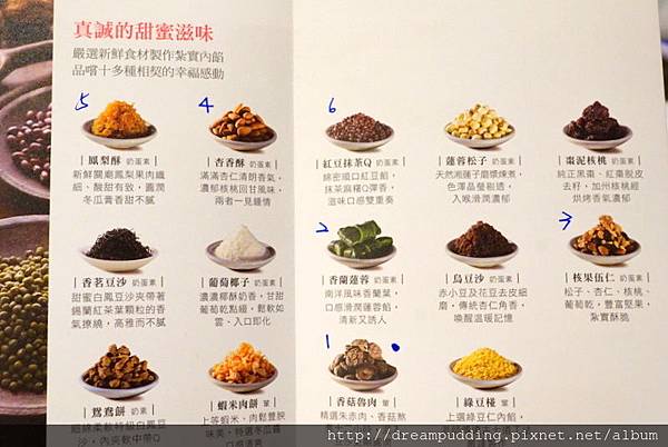 口味目前有14種,目錄也有詳細的內容物介紹,服務人員也很細心,還幫我們標記試吃的口味順序,讓我們不會混亂。
