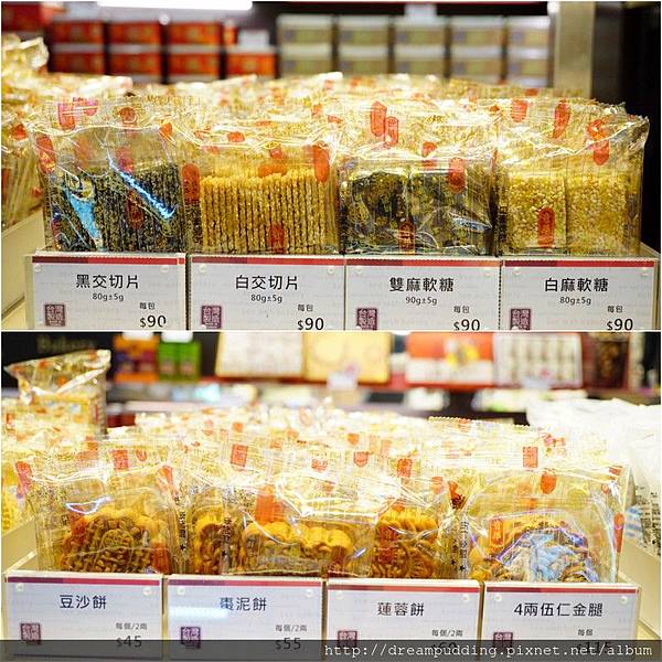 日香珍在北港也很有名,主要也是販售中式大餅,口味非常多,禮盒也是喜氣的紅。