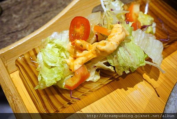 這天的開胃小品跟小菜是生菜沙拉跟泡菜,生菜沙拉新鮮,還有一抹我超喜歡的龍蝦沙拉耶!泡菜有涮口,不會太辣。