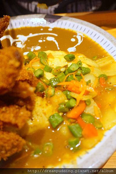咖哩口感溫潤不辣,還有蛋包跟青菜碎。