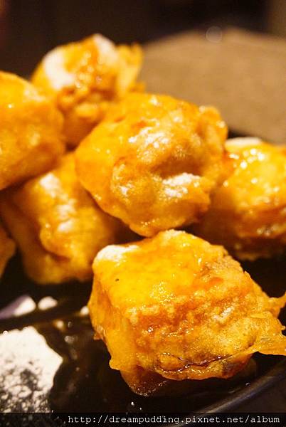炸的外酥內蓬鬆的吐司塊,加了黑糖跟糖粉,口感香酥帶點微脆還有甜蜜。