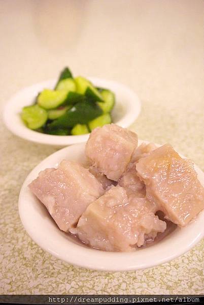 招待的小菜,醃漬黃瓜十分清脆,鹹的自然,有著細細微的清甜;芋頭軟甜帶點鬆軟綿密,好吃