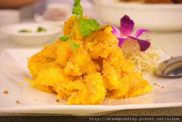 蝦球個頭大,鹹蛋黃金沙裹的綿密,外酥內彈,好吃。