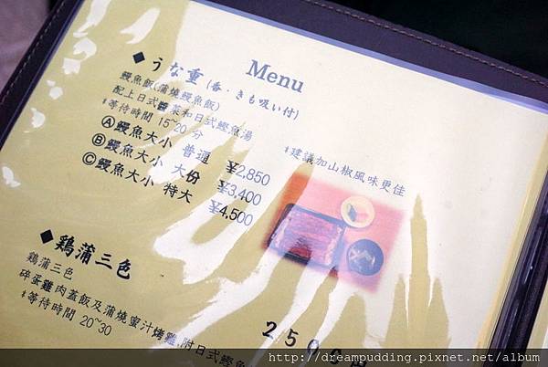主要販售鰻魚飯,如果不敢吃鰻魚,也有販售雞肉蓋飯;鰻魚依大小份量價位有所差異。官網上也有詳細MENU及價位,貼心的是,網頁還有語言顯示選擇,可以選擇中文翻譯喔^^
