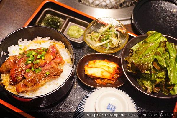 仔虎米澤牛在仙台相當有名,但我們這天來的時候接近他們中午休息時間,日本餐廳不像藥妝店幾乎都會有會說中文的服務生,也不一定有中文MENU,我們英文也都不好,所以點餐溝通花了一點點時間,後來比手畫腳加上一些我們不知道有沒有說正確的英文,後來以為點了燒肉,結果沒想到來的是套餐
