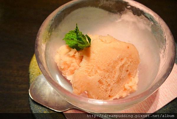 餐後還有附上清爽的冰淇淋,上面的一抹薄荷葉,還能清清味蕾。