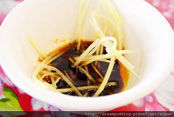 佐料區有薑絲跟醬油還有辣椒可以自行調配。