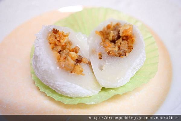 鹹麻糬則是我最愛的口味,裡面有瘦肉、竹筍跟紅蘿蔔,口感香濃軟Q帶點細微的筍脆,我超愛。