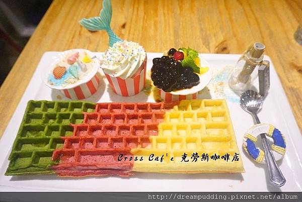 克勞斯咖啡店Cross Caf'e一直是口袋名單,之前來台北都列在行程裡,但都陰錯陽差的沒能去成,這次總算是吃到我心心念念想很久的鍵盤鬆餅啦(灑花)