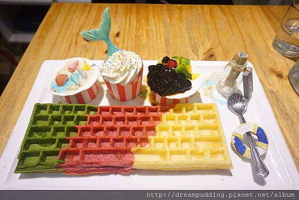 而三個小杯子也裝了好吃的配料,上的貝殼裝飾跟美人魚尾巴都是店家用白巧克力製作而成,製作成沙灘模樣,美極了,超用心!!!