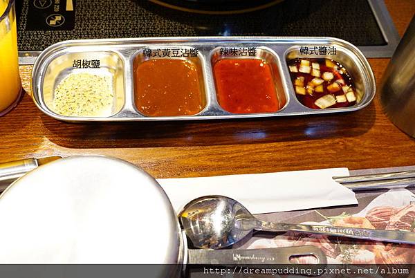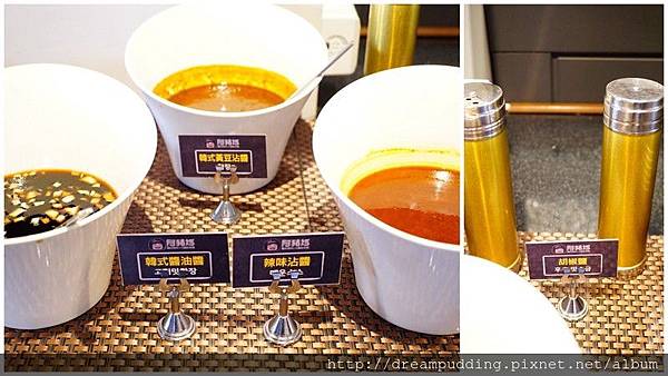 沾醬則提供四種,有韓式醬油、辣味沾醬、韓式黃豆沾醬以及胡椒鹽。