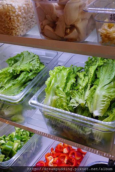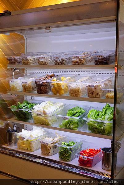 火鍋食材跟部分燒烤食材,像是丸類跟蔬菜都放在冷藏區自取,乾淨整潔明亮,而且貨補的很勤,都是接近滿的狀態(這點很重要)