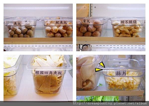 挺喜歡它們家的丸類,口感緊時Q彈,很是不錯,也有提供韓式火鍋常見的四角魚板;還有提供切好的蒜片喔!