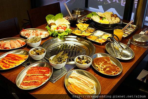 餐點非常的多樣化,除了有韓式烤肉之外,也有提供蛤蠣跟蝦子兩種海鮮,以及韓式小菜、跟一些韓式招牌熟食還有火鍋,近40種食材可以選擇,還有韓國籍老闆親自醃製的多種不同醃製口味的肉類可以選擇,飲料也是無限暢飲,吃烤肉就是要配飲料阿!把飲料言歡多麼享受阿
