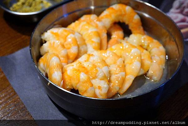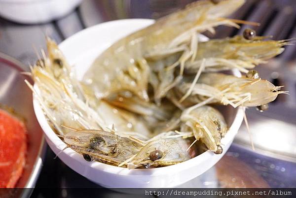 海鮮目前提供蝦子和蛤蠣兩種,記得海鮮一上桌要趕緊下鍋或下烤爐以確保新鮮。