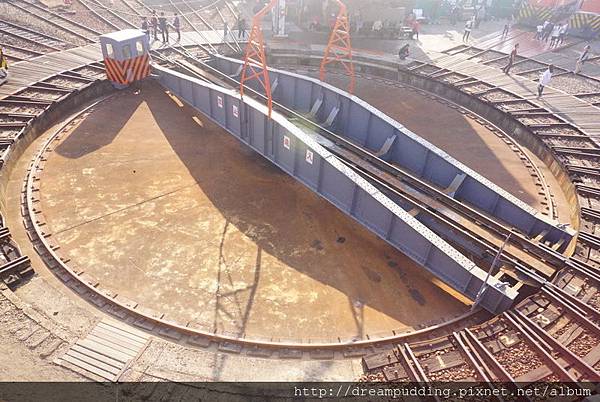 軌道會透過轉盤移動,長程馳奔而來的火車可以透過軌道的轉動,進到自己的車庫中。