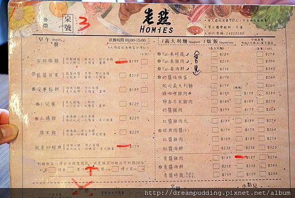 老點Homies在網路上風評很好,店家本身也很獨特,是間從早營業到凌晨的店家,餐點有早午餐(早午餐只供應到下午15:00)也有義大麵及燉飯。