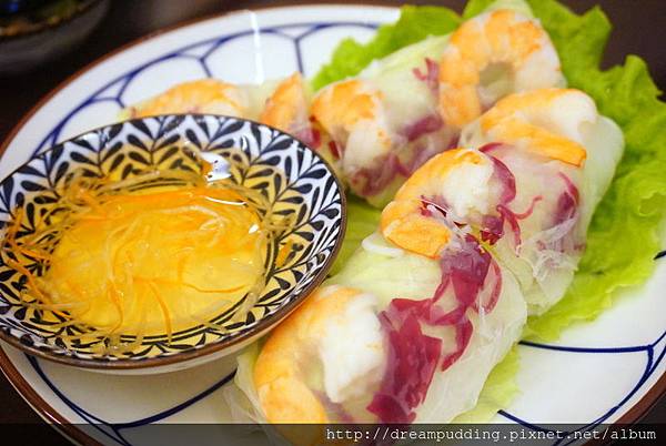 鮮蝦涼皮春捲(2捲),NT 80元。
